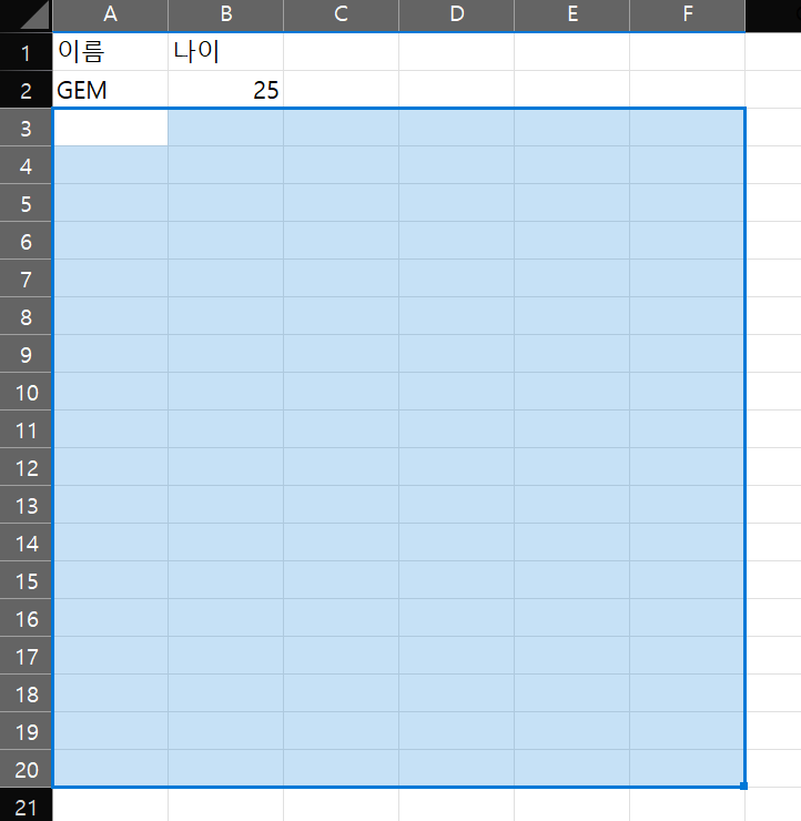 - 전체 행 선택: 행 번호(1, 2, 3...)를 클릭