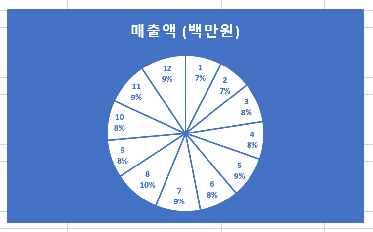 파이 차트는 전체를 100%로 봤을 때 각 항목이 차지하는 비율을 보여줍니다.