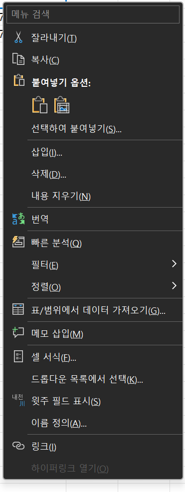 - 값만 붙여넣기: 수식이 아닌 계산 결과만